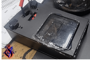 The Black Box houses the aplifying circuit, the solar charging circuit (which powers the amps) the vampire circuit, and the input/output circuits.